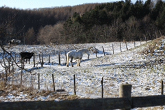 馬木葉さんは、もともと牧場主。当然、ミルクを絞るための牛も約80頭飼育しています。ただ、酪農だけで生活をしていくのは厳しいらしく、現在は蝦夷鹿の販売が大きな収入源になっているこのこと。また、サブプライム問題が発生する以前は、馬も高値で売れたらしいのですが、現在はそのころで1/10の値段にしかならない為、現在は種を残す目的の為だけに2頭を飼育しています。ちなみに、健脚な馬はばんえい競馬へ、その他は熊本や群馬へ販売していたそうです。