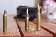 弾丸とはいっても、ライフルの弾丸は先がそがった円錐上になっています。蝦夷鹿のような大きな動物を一発で仕留めるために、ダメージ大きい特殊な弾丸を使用します。写真の通り、ターゲットにあたると、弾丸の先がキノコ状に広がるホローポイント弾。そして、通常は鉛でできている弾丸は、環境に配慮した銅製になっています。