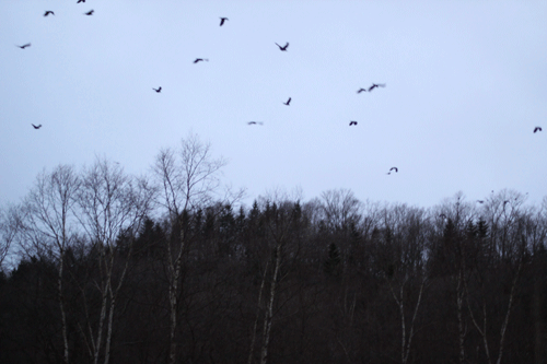 鉄砲を撃つと、その音を聞きつけてカラスが集まってきます。人間のおこぼれを狙っているそうですが、それにしてもどこからこれほどのカラスが集まってくるのでしょうか?