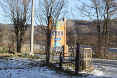 しんしんと降る雪の中を、迎えに来ていただいた株式会社馬木葉の松野社長さんのランドグルーザーで白糠の牧場まで向かいしました。約30分で牧場に到着、白糠町が協賛する「松野牧場」という看板と、常々写真では見ていた「株式会社馬木葉」の看板が妙な感覚です。