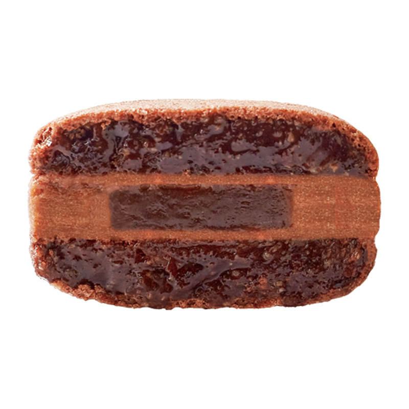■原材料名 乳等を主要原料とする食品、チョコレート、砂糖、アーモンドパウダー、バター、卵白、コーンシロップ、ココアパウダー / 糊料(増粘多糖類)、乳化剤、着色料(コチニール色素)、香料、(一部に卵・乳成分・アーモンド・りんごを含む)