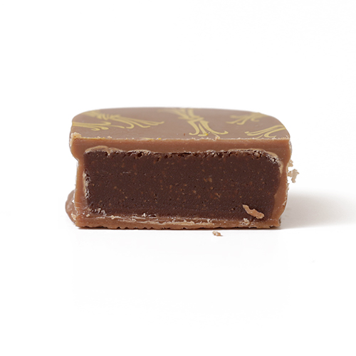 ・バニラの香りを効かせたガナッシュを、ミルクチョコレートでコーティングし、バニラビーンズの模様を転写しました。
