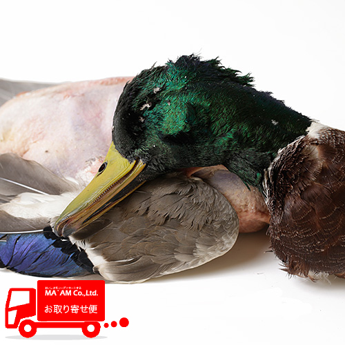 [獲れ次第の手配]宮城県登米産 無双網で捕った チルド 天然まがもオス(頭付き・毛なし・内臓付き)