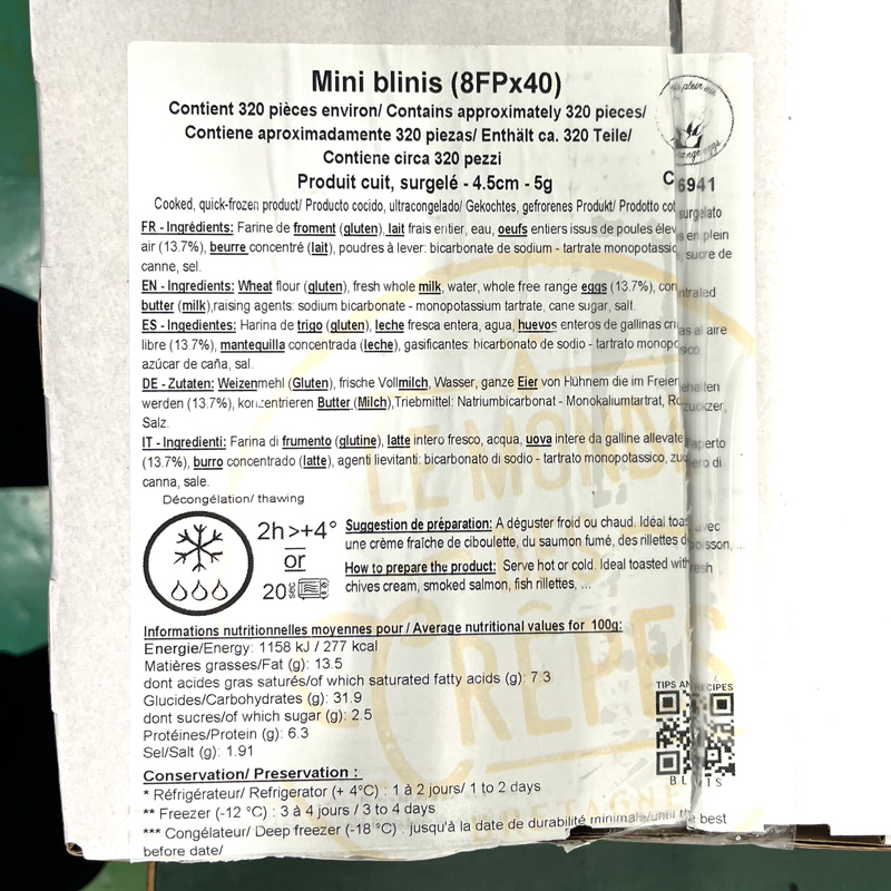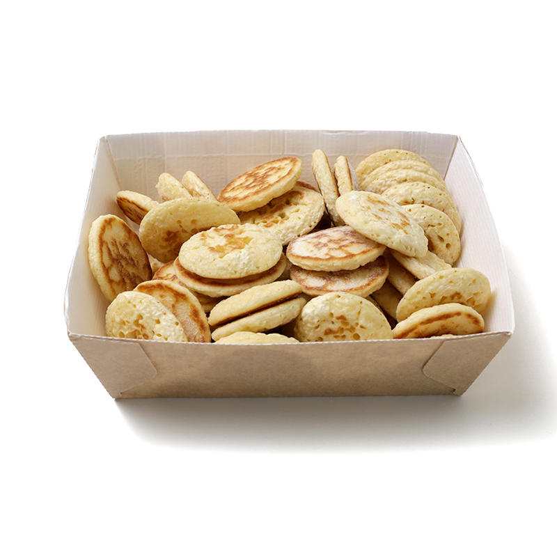 ・ふわふわ食感のミニブリニを手軽に使いやすいように冷凍しました。解凍後そのままお好みのトッピングをのせてお召し上がりいただけます。 温めても、冷たいままでも、塩味にも、甘味にもなにを合わせてもOKです。食材の合わせ方で、お食事〜デザートまで変幻自在の “ブリニ” をぜひご賞味ください。 ※保存料や添加物は使用しておりません。