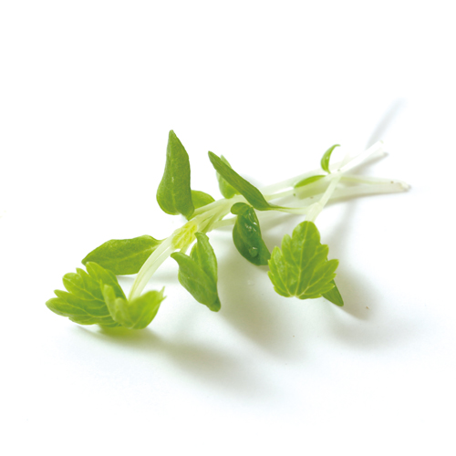 ・独特の香りとシャキシャキとした歯触りが特徴である、セロリのマイクロ野菜。スープ、シチューなど幅広い料理の香味野菜として使用されます。