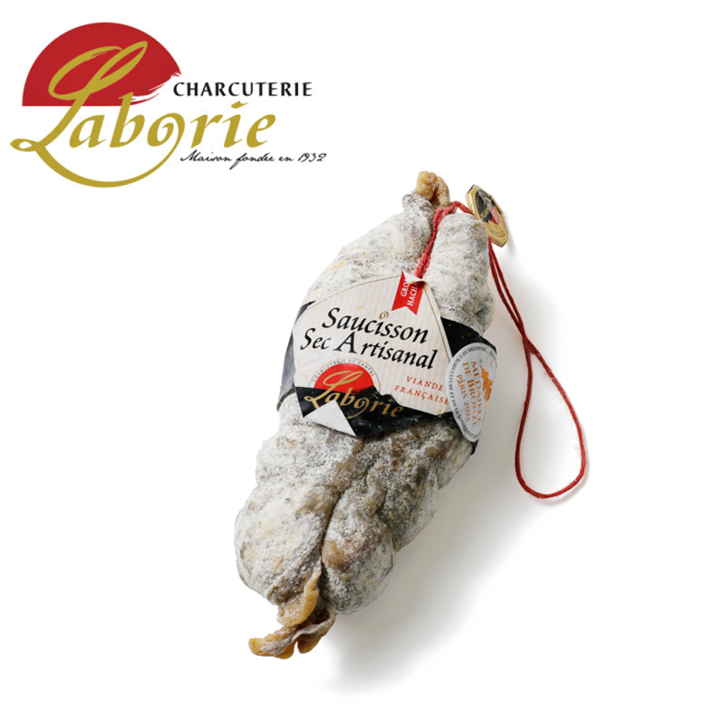 メゾン・ラボリー ソシソンセック アルティザナル 6週間熟成の特徴仕様・メボン・ラボリーを代表するサラミ。良質な脂が多い、4歳以上の経産雌豚を使用しているため、口に広がる余韻が非常に長く、粗びき食感も楽しめます。