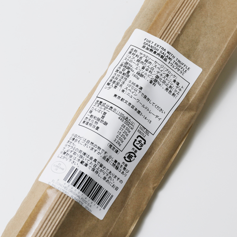 ・デュロック種の豚肉を使用したサラミの周囲に、ハーブをたっぷりとつけて乾燥させました。デュロック種ならではの濃厚な肉の旨味と、高品質トリュフの上品な香り、それを包みこむ白カビの調和をお楽しみください。
