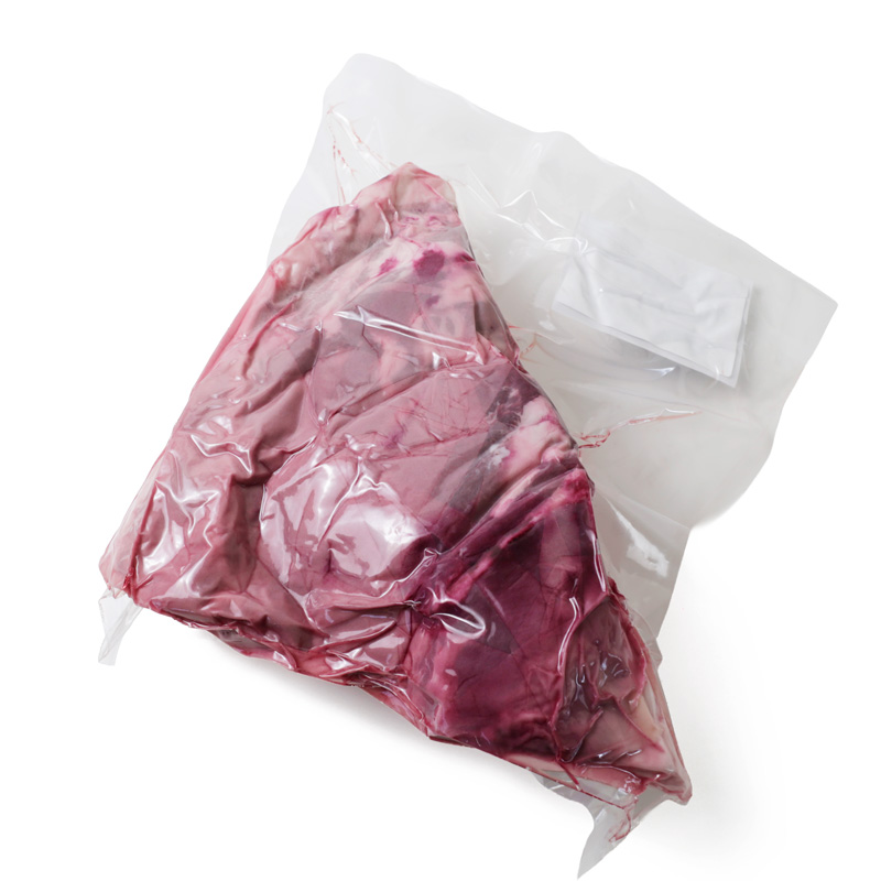 生体で搬入されると、その後殺器で止め刺しを行い、高温蒸気洗浄、高圧洗浄を経て内蔵摘出及び剥皮を行います。その際に、体表及び内蔵を検視し健康な個体であるかを確認します。異常がなければ約5日間冷蔵庫で保管し、肉の硬直を解き、余分な水分等を除去した後に、部位ごとに真空パックのうえ約-30℃で保管しています。
