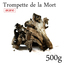 ・フランス語では トランペット ド ラ モール(trompette de la mort)、日本語ではクロラッパ茸と呼ばれます。「死者のトランペット」の名の通り生鮮は真っ黒で、傘の中は空洞になってトランペットのような形です。木耳のように薄めのキノコながら食感が良く、うま味成分が豊富。バターで炒めたり、クリームで調理しソースして利用されます。